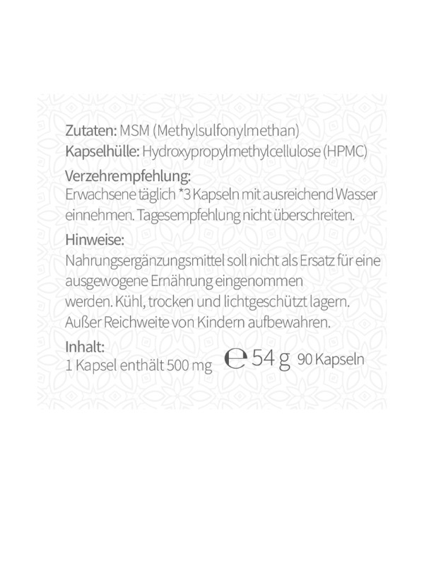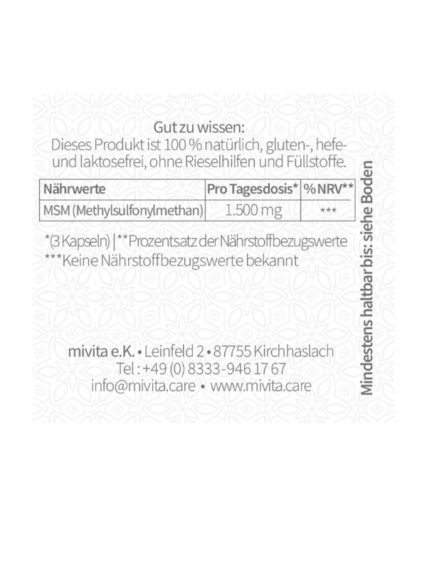 MSM (Methylsulfonylmethan) | 1.500 mg | *** |